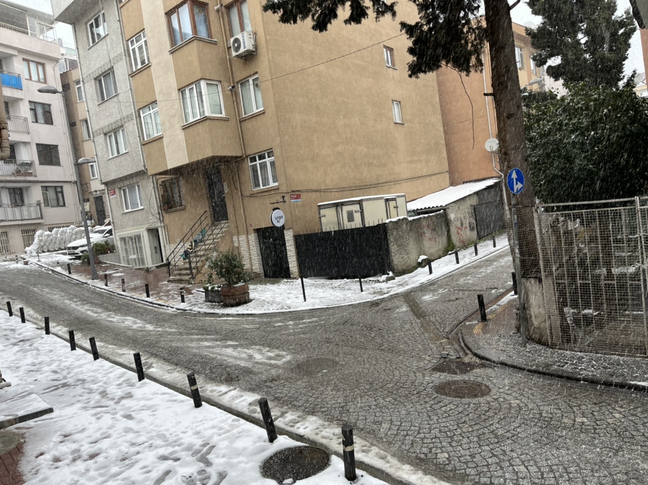 Konumum adına bu kadar kötü olacağını beklemiyordum. Sıcaklık yüksek iken yağış vardı ama tutmuyordu, sıcaklık düşük iken 1 gram yağış yok. Yerde 1 cm örtü göremedim sadece arabalar tuttu. Şimdi de çatılarda tutan 1-2 cm kar şakır şakır eriyor