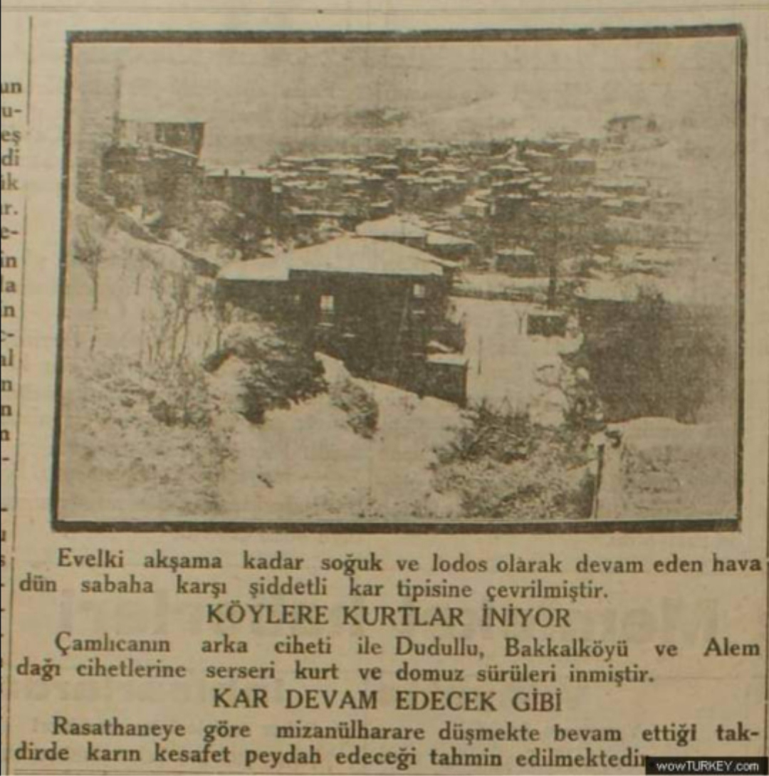 Evlerin kapıları karla kaplanıp görülmez oldu. Açık dükkân bulmak, piyangodan yüklüce bir ikramiye kazanmakla eşanlamlıydı. Beşiktaş Ihlamur’da kurtlar Mehmet adında yaşlı bir adama saldırdı, feryada yetişen semt sakinleri yaşlı adamı birkaç ısırıkla kurtların elinden kurtardı.