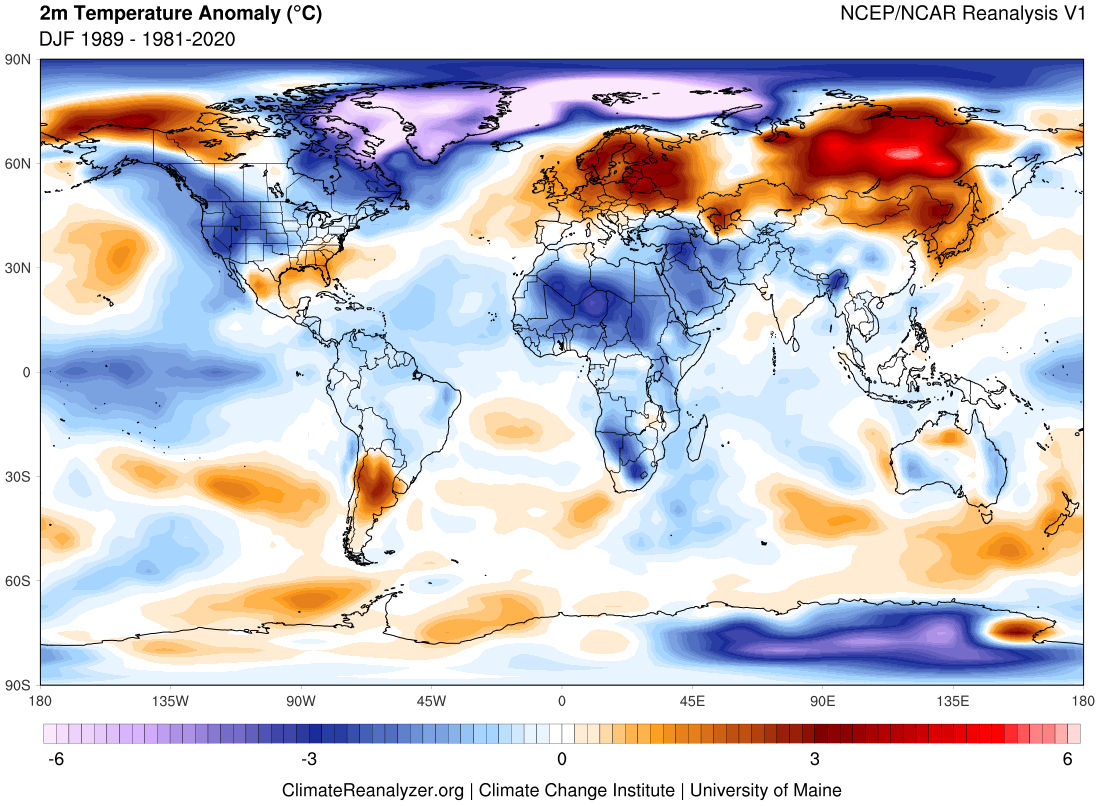 Meteoroloji uzmanı @BenNollWeather, 2020-2021 Kışı için olası sinoptik deseni 1989 kışına benzetmiş. Biz de daha önce 1971, 2000, 2006 ve 2008 kışlarına benzetmiştik.Hepsinin ortak yanı; Rusya ve Sibirya bölgesinin sıcak, ülkemizin soğuk bir kış geçirmiş olması. 1989/1981-2020 2m Anomalisi: