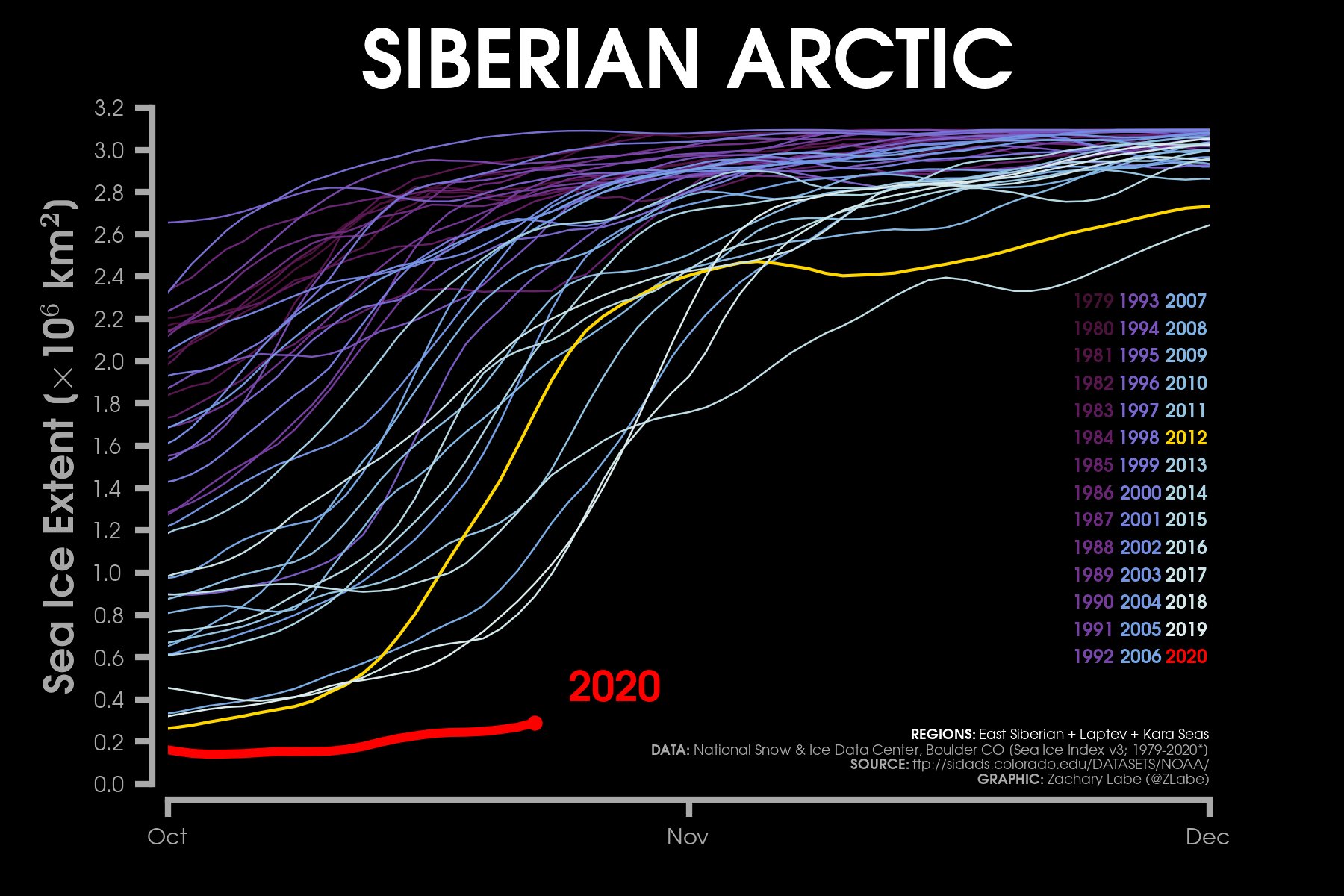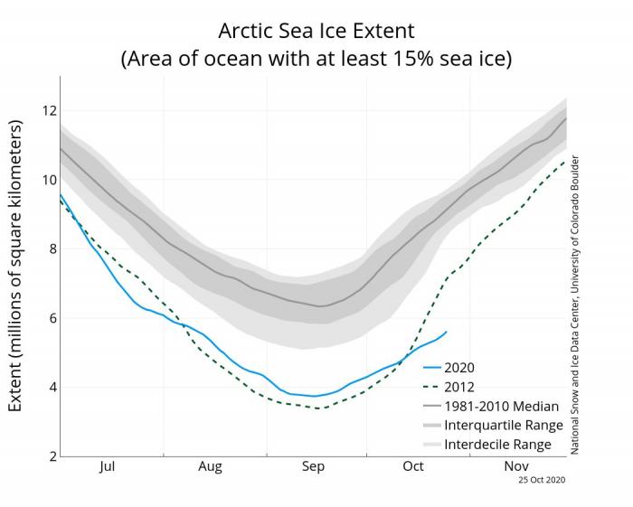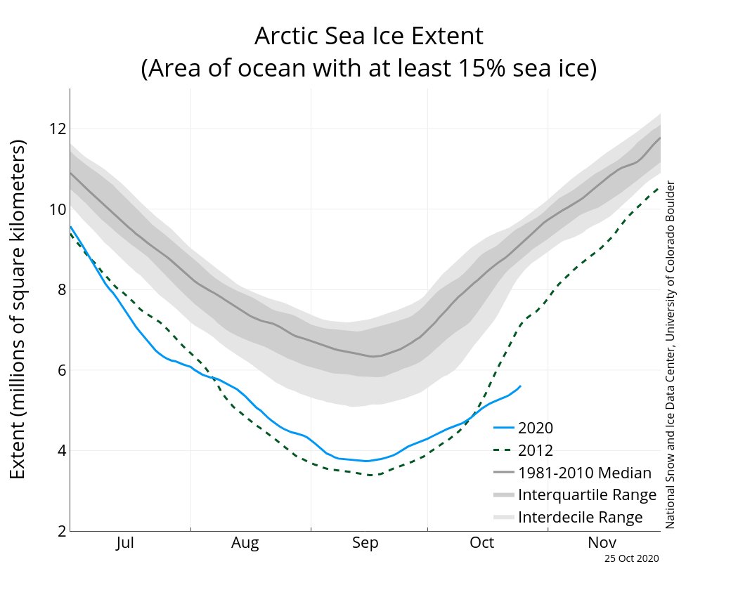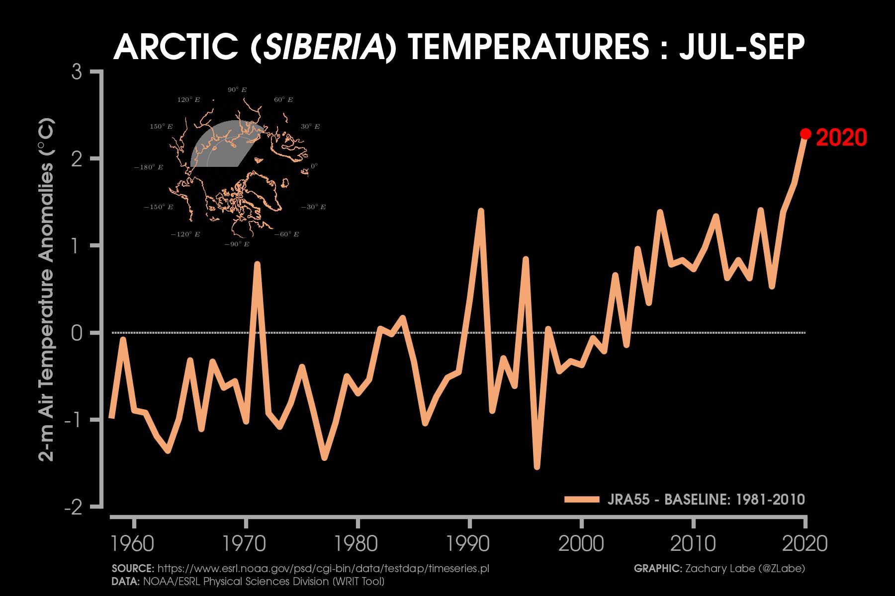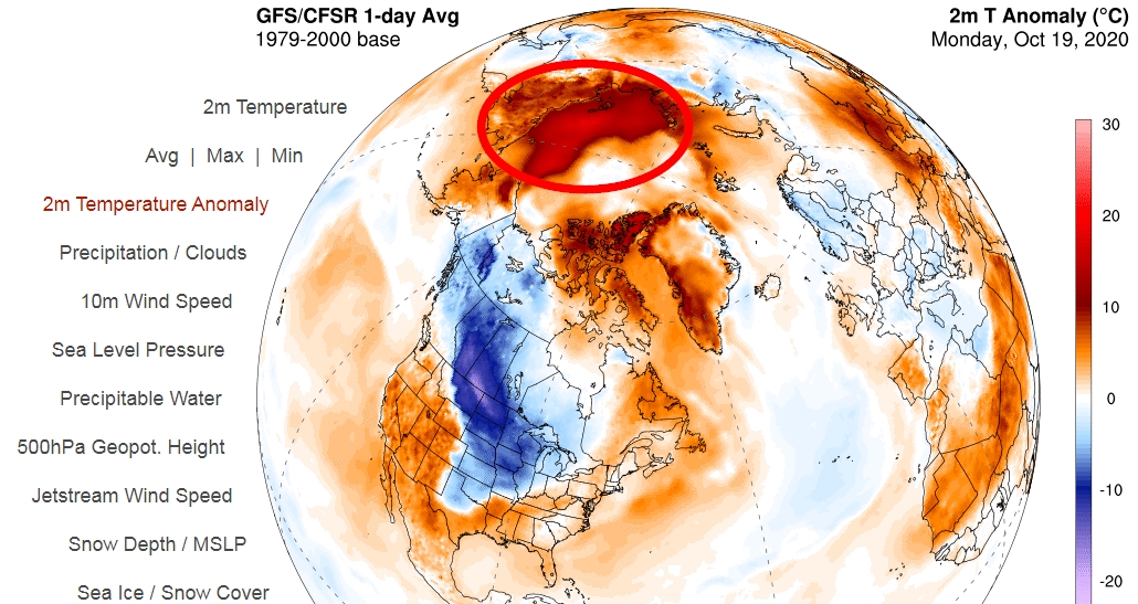 Ayrıca 1979-2000 yılları arası kutup bölgesi sıcaklık ort. göre şu anda 10 °C'nin bile üzerinde olduğumuz görünüyor. ABD ve Sibirya bölgesi.. Sibirya bölgesi için de, yine tarihinin en düşük buzlanma ve aynı zamanda tarihinin en yüksek sıcaklık değerleri kayda geçti. İlginç olan ise sanki kutup ABD'ye kaymış gibi, kuzey Amerika da bugün itibarıyla tarihinin en yüksek kar ve buz örtüsüne ulaştı.
