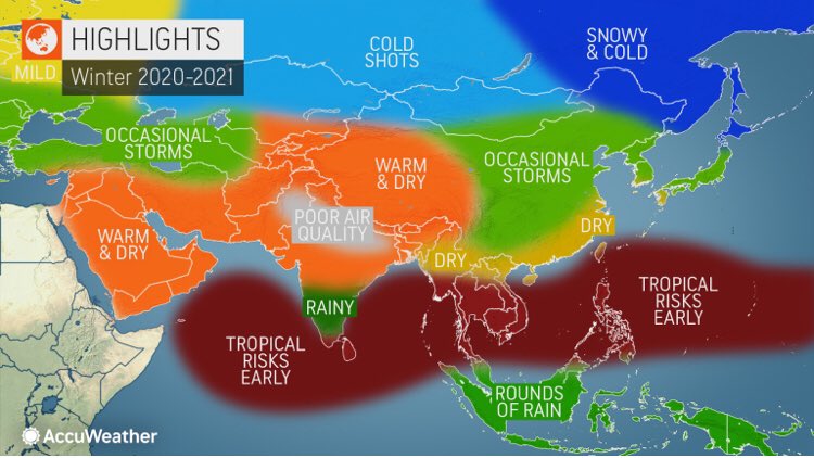 Accuweather 2020-2021 Asya kış tahmini yayınlandı. Soğukları biraz uzağa vermiş ama acaba bu sene 2012'den sonra nihayet bir Sibirya varlığı mı diye de insan düşünmüyor değil.