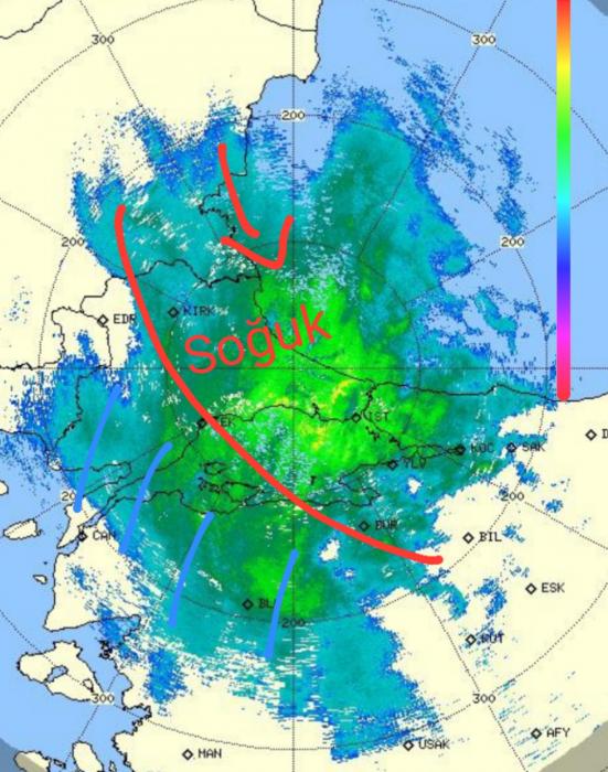 Sicaklik dususu cepheden dolayi hizli ancak cig noktalari cogu yerde 1-2 derece arasi bu yuzden yagislar kara donmuyor, aksamustu 4-5 civari canakkalede sonra marmaranin kalaninda kar doner diye dusunuyorum