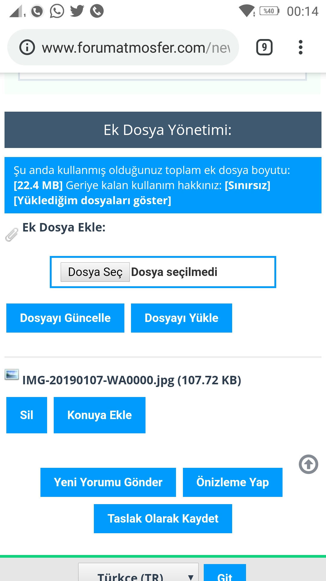 (07-01-2019, Saat: 00:04)Yusufkefal Nickli Kullanıcıdan Alıntı: Onu beceremediysen en altta forumun kendi uygulaması var yazdım ama kaçırdınız demek ki. Dosyayı seçin, yükleye basın. Sonra tekrar en alta inip, konuya ekle deyin. imlecin olduğu yere kod ekleyecek, bu kadar
