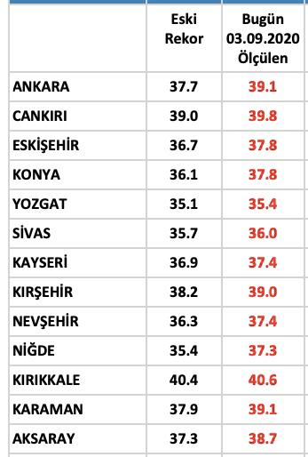 Bugün, ülkede sıcaklıkların 45 C'yi geçtiği yerler oldu. Önümüzdeki hafta, perşembe - pazar günleri arası hava sıcaklığının 50 C'yi geçmesi muhtemel olan şehirler var. Bu hafta bir çok şehrin meteoroloji istasyonlarından Eylül ayı sıcaklık rekorları gelmesi şaşırtıcı olmayacak.