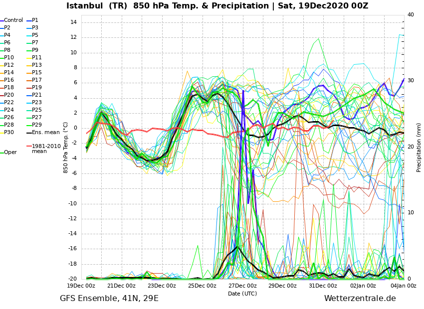 İyi haftasonları herkese. Geçtiğimiz günlerde 1-2 senaryo 26 Aralık’tan sonra sistem gösteriyordu ana senaryo ısrar etmesine rağmen bir çok senaryo lehimize bir sistem olabilir diyor. Evet bir kaç gündür ısrarla Avrupa’ya gösteriyor. Geçtiğimiz yıllarda bize gelecek bir çok sistemin hayalini kurarken yok olduğuna şahit olduk. Ben 23-24’ü ne kadar net belli olmaz diyorum. Bir çok tecrübe yaşadık hep beraber. Bize gelme ihtimali az değil bence. 21-22 sistemi bize hafif yağış ve kuru soğuk bırakacak sadece. İstanbul’da sıcaklıklar perşembe gününe kadar tek hanelerde seyredecek. Sonra bir kaç derecelik artış ardından bu olası sistemle beraber hissedilir düşüş ve bol yağış (kar olması dileğiyle)