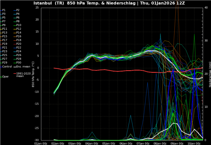 Bu sisteme balkanlar uzerinden marmara bolgesine mudahele eden 1021 mblik parazit yuksek basincin avrupa yakasinin cogunlugunu heba etmesi damga vurdu.Serkan Hocamin bahsettigi parazit riski bu sefer Y.B olarak karsimiza cikti. 2022 den beri istanbula ilk defa inen -42 derecelik soguk cekirdegin elini ayagini bagladi.Ruzgarlarinin gucunu kesti.Var olan ruzgar akisinin kuzeybati guneydogu olmasini sagladi.Yarattigi baskiyla karadeniz uzerinde dusey karisimlar olmasini engelledi.Karadeniz yinede tepki vererek zekeriyakoyden eminonune kadar bir kutle olusturdu ve o bolgedekiler kar heyacanini yasadilar.Ama bogazdan 20-25 km batiya gittiginizde kutleler yok oldu ve gunluk guneslik bir hava oldu.Bu Y.b yuzunden catalca hadimkoy buyukcekmece bermuda ucgenine damla kar dusmedi.Bolge geceleri siddetli ayaz gunduzleride bol bol gunes gordu.Simdi en erken ihtimal 12-13 ocak belkide ay sonu.Bir Y.b yillar sonra gelen cok buyuk bir baligi kacirmamiza neden oldu.Uzerine umitleri minumum 10 gun sonraya atti.Bu Y.b rakip takima son dakikada penalti calan hakem veya koseye giden suta son anda mudahe eden defans oyuncusu veya kale cizgisinden topu cikaran oyuncu gibi davrandi.O y.b akdeniz ilkliminin kalesini koruyan cok onemli bir defans oyuncusu giibi davrandi.Cok onemli bir karsi atagi savusturmus oldu.Istanbul avrupa yakasi yarin baslayacak lodos,firtinasiyla iliman akdenizli tarafina siki sikiya sarilacak gibi duruyor.Sistem Avrupa yalasindaki kar severler icin cok uzucu bitti.Koskoca Avrupa yakasi cevre daglarin sogugunu yiyen gunluk guneslik izmir iklimi gibi davrandi